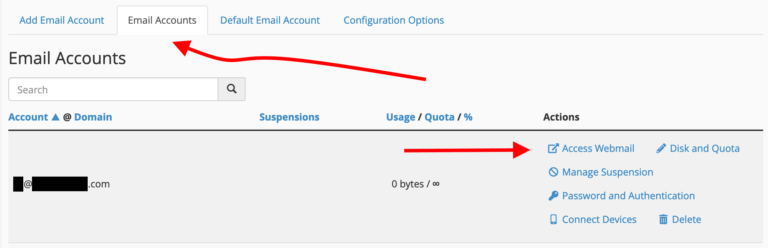 At this point, accessing your webmail is very easy. Click on the “Access Webmail” link that’s visible next to your address in the “Email Accounts” tab: